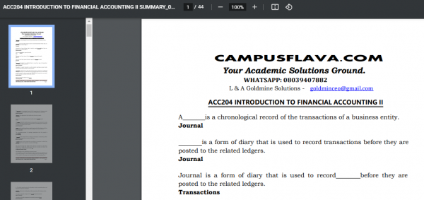 ACC204 – INTRODUCTION TO FINANCIAL ACCOUNTING II