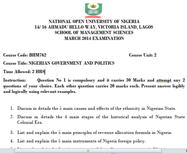 MARCH 2014 – Exam Past Question