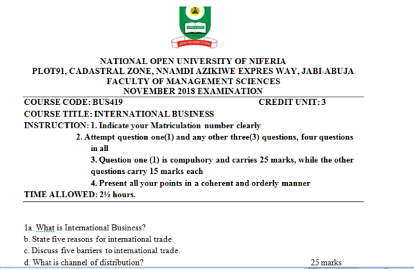 You can purchase your BUS419 Past Questions (2014 – 2019)