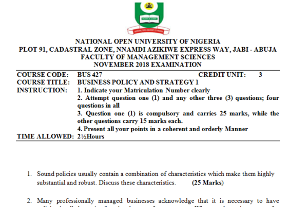 BUS427 – BUSINESS POLICY AND STRATEGY 1 POP PAST QUESTIONS (NOUN)
