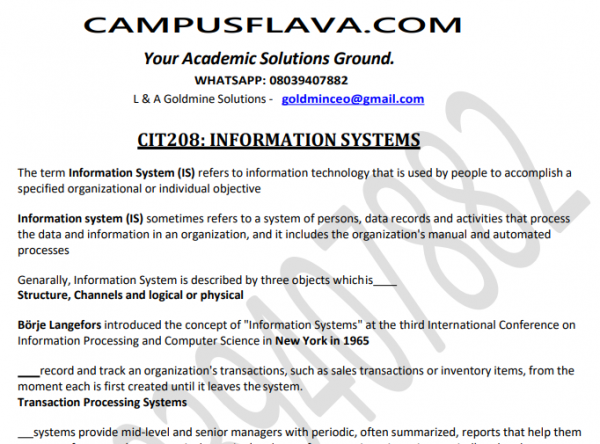 In this file you will get up to date compilation of past questions and answers on Cit208
