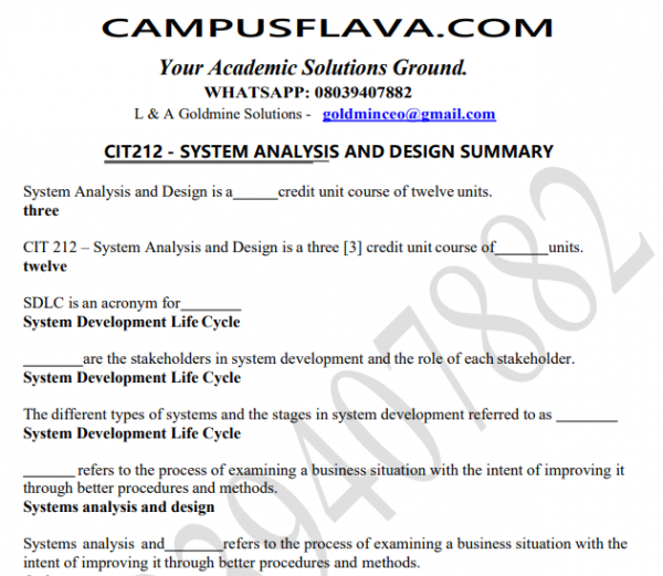 CIT212 – SYSTEM ANALYSIS AND DESIGN EXAMS SUMMARY (NOUN)