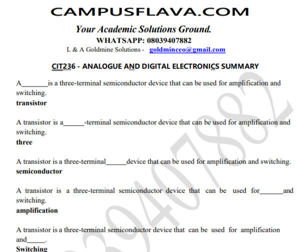 CIT236 – ANALOGUE AND DIGITAL ELECTRONICS EXAMS SUMMARY (NOUN)
