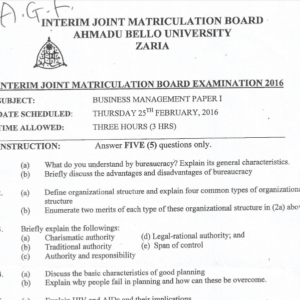 IJMB means Interim Joint Matriculation Board (IJMB) is an Advanced Level (A’level) nine months federal government programme run and moderated by Ahmadu Bello University, ABU Zaria.