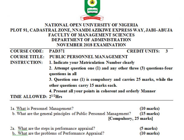 November 2018 Exam Past Questions