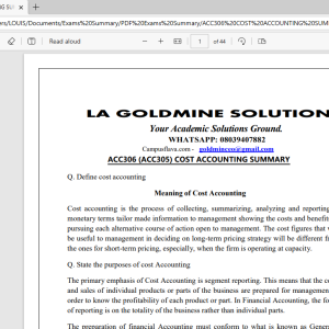 Showing the single result Default sortingSort by popularitySort by average ratingSort by latestSort by price: low to highSort by price: high to low Sale! ACC306 – COST ACCOUNTING EXAMS SUMMARY (NOUN) ₦1,500.00 Original price was: ₦1,500.00.₦1,000.00Current price is: ₦1,000.00. Add to cart