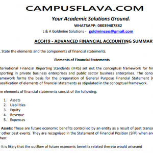 Showing the single result Default sortingSort by popularitySort by average ratingSort by latestSort by price: low to highSort by price: high to low Sale! ACC419 ADVANCED FINANCIAL ACCOUNTING SUMMARY (NOUN) ₦1,200.00 Original price was: ₦1,200.00.₦1,000.00Current price is: ₦1,000.00. Add to cart