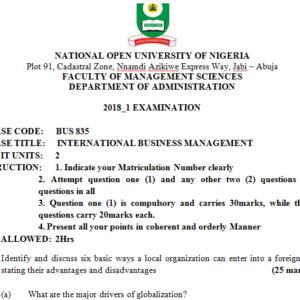 Showing the single result Default sortingSort by popularitySort by average ratingSort by latestSort by price: low to highSort by price: high to low Sale! BUS835 – INTERNATIONAL BUSINESS MANAGEMENT POP PAST QUESTIONS (NOUN) ₦500.00 Original price was: ₦500.00.₦300.00Current price is: ₦300.00. Add to cart
