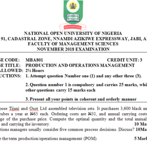 Showing the single result Default sortingSort by popularitySort by average ratingSort by latestSort by price: low to highSort by price: high to low Sale! MBA801 – PRODUCTION AND OPERATIONS MANAGEMENT POP PAST QUESTIONS (NOUN) ₦500.00 Original price was: ₦500.00.₦300.00Current price is: ₦300.00. Add to cart