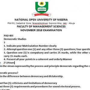 Showing the single result Default sortingSort by popularitySort by average ratingSort by latestSort by price: low to highSort by price: high to low Sale! PAD403 – Democratic Studies Pop Past Questions (NOUN) ₦600.00 Original price was: ₦600.00.₦300.00Current price is: ₦300.00. Add to cart