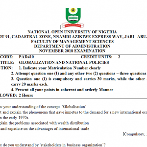 Showing the single result Default sortingSort by popularitySort by average ratingSort by latestSort by price: low to highSort by price: high to low Sale! PAD410 – GLOBALIZATION AND NATIONAL POLICIES POP PAST QUESTIONS (NOUN) ₦600.00 Original price was: ₦600.00.₦300.00Current price is: ₦300.00. Add to cart