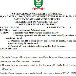Showing the single result Default sortingSort by popularitySort by average ratingSort by latestSort by price: low to highSort by price: high to low Sale! PAD707 – Local Government Administration Pop Past Questions (NOUN) ₦600.00 Original price was: ₦600.00.₦300.00Current price is: ₦300.00. Add to cart